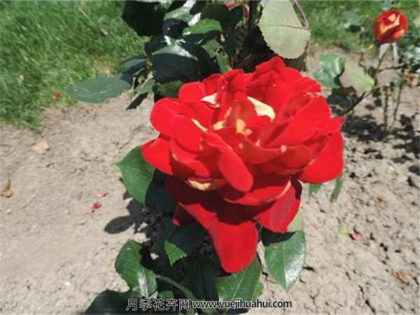 大花月季梅朗随想曲特征:拉丁文Caprice de Meilland,花表里双色,瓣面鲜红色,背面黄白色,并有明显放射状红筋。高心卷边呈杯状。瓣扇圆形,大型花,花径13cm,花瓣25枚左右,味微香,花蕾卵状。叶长椭圆形,半光泽,叶中脉紫色,叶柄棕红色,锯齿大而明显。花梗棕红色、茁壮。植株半直立,株势强健。该品种花形优美,红艳可爱,适宜盆栽。